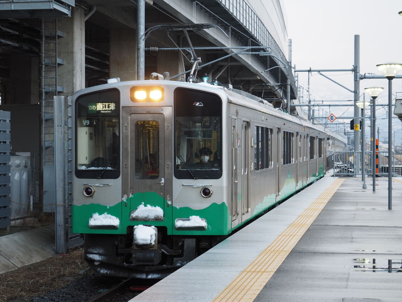 乗車したのはわずか10名足らずという少なさで、この少ない乗車を乗せて直江津駅を発車します。