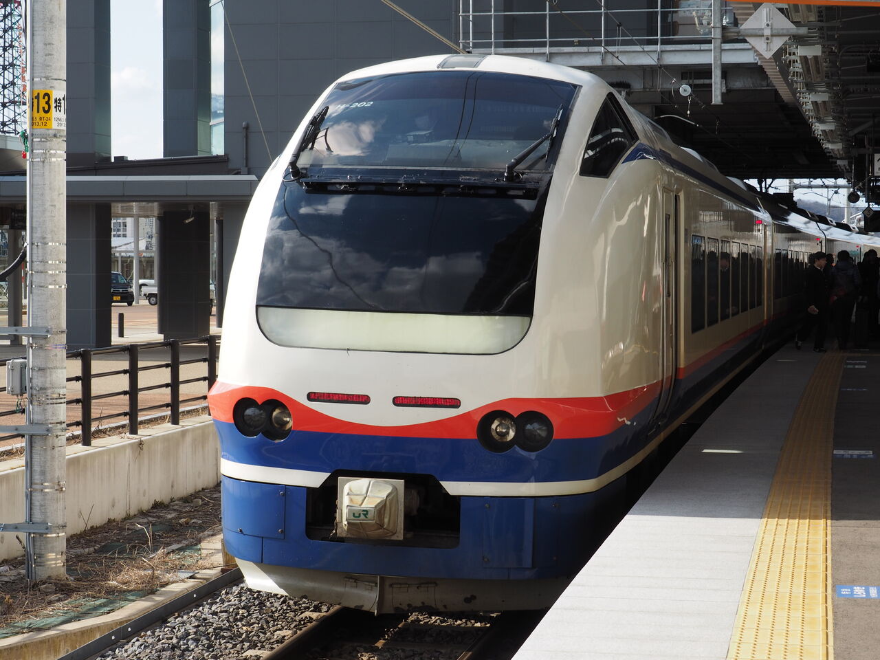 E129系もシートピッチが広いので決して居住性は悪くはないのですが、さすがにリクライニングシートは快適ですね~。うとうとしながら上越妙高まで帰ってきました。