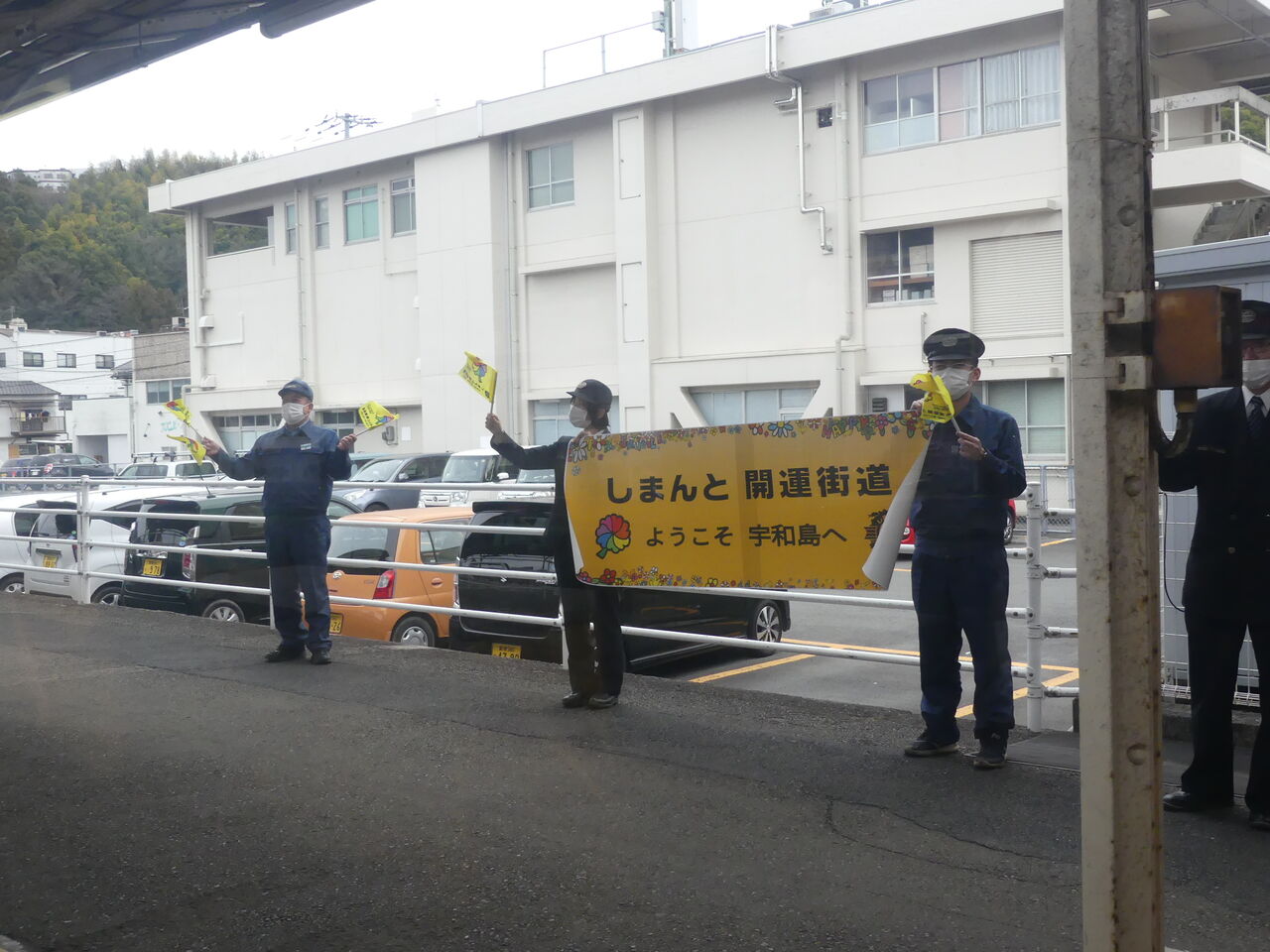 この駅で[しまんと開運汽車 すまいるえきちゃん号]を下車し、私たち「窪川駅プラン」の乗客はバスに、そして「宇和島駅プラン」の人たちはバスから[しまんと開運汽車 すまいるえきちゃん号]に乗り換えます。
