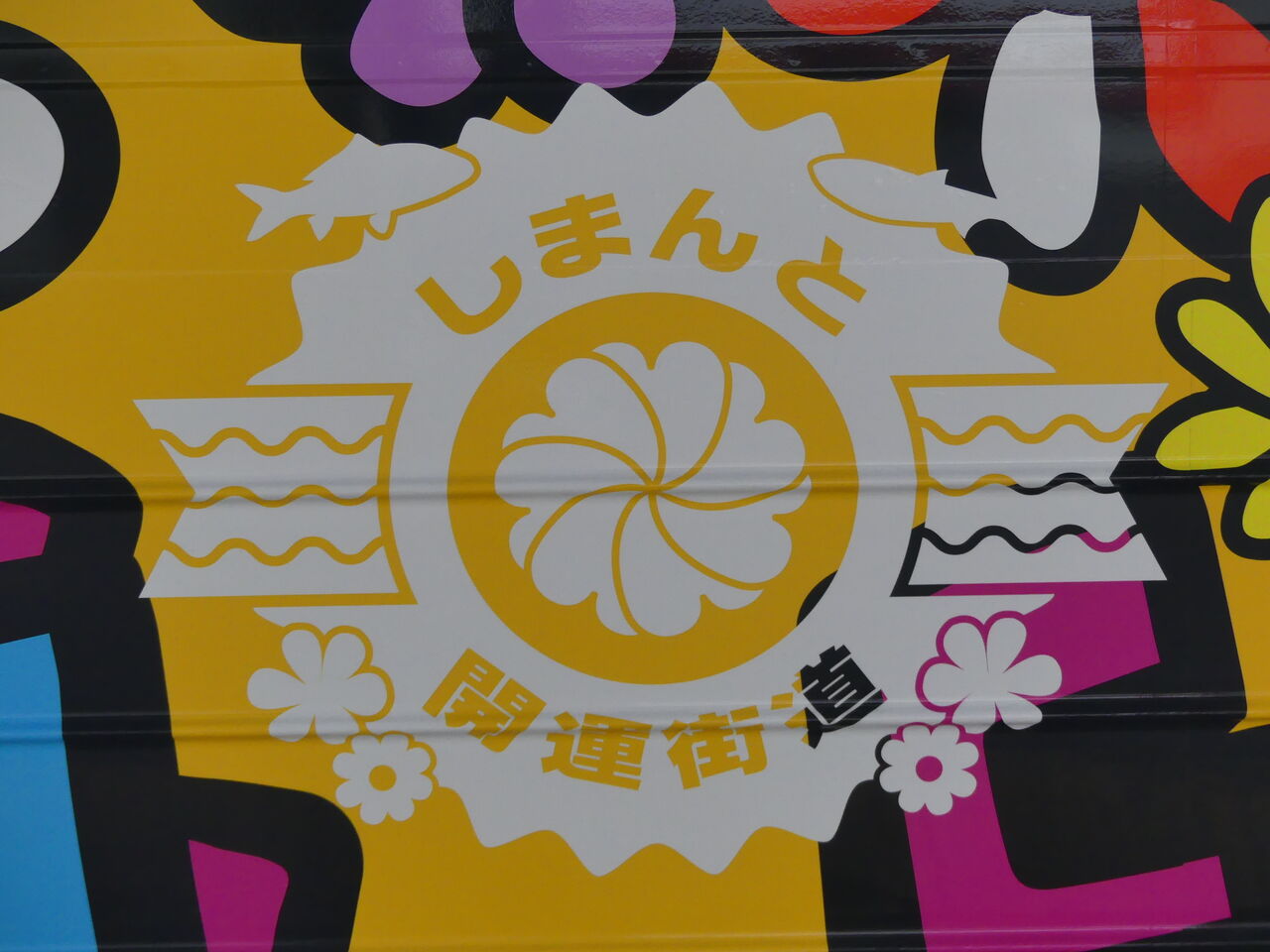 この[しまんと開運バス]も、先ほど乗車してきたた[しまんと開運汽車 すまいるえきちゃん号]同様、「SHETA(シータ)」さんがデザインしたラッピングバスです。
