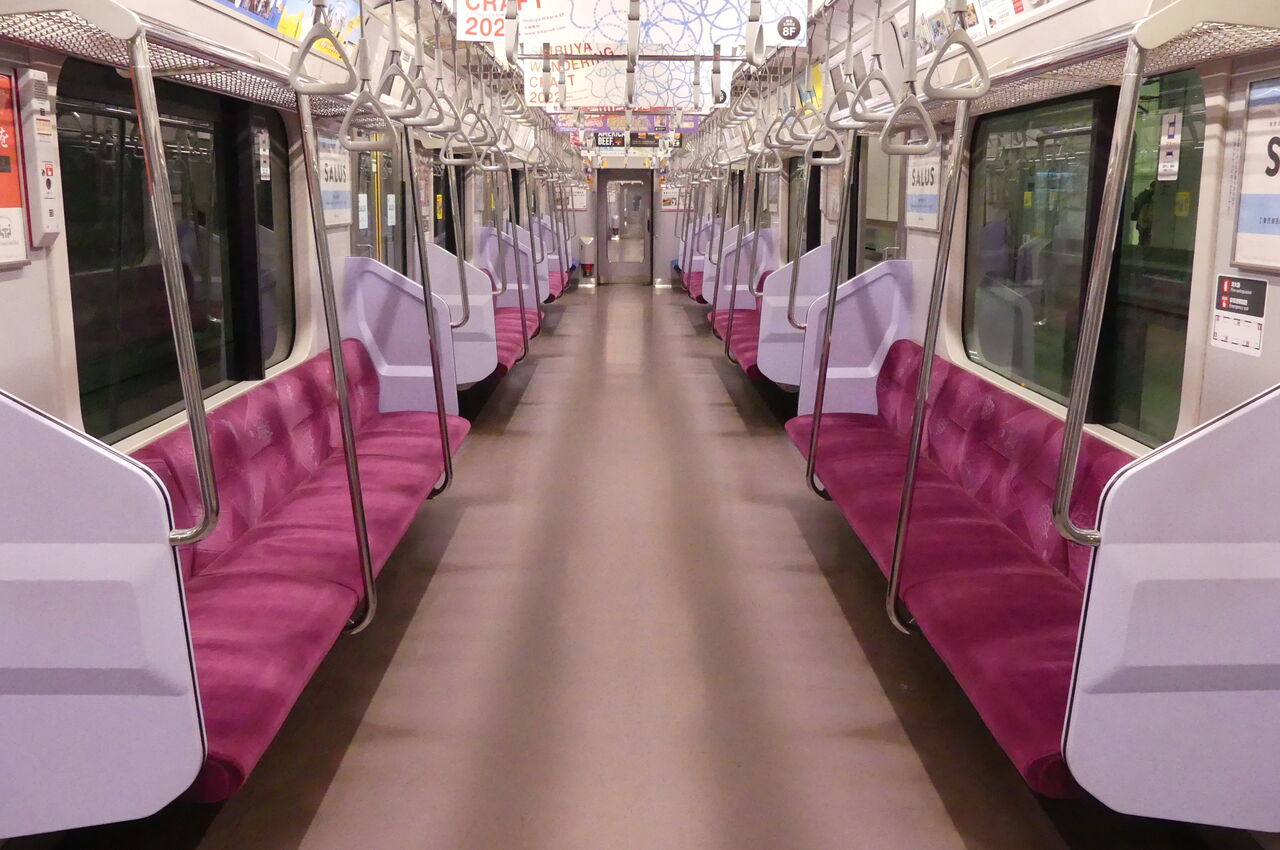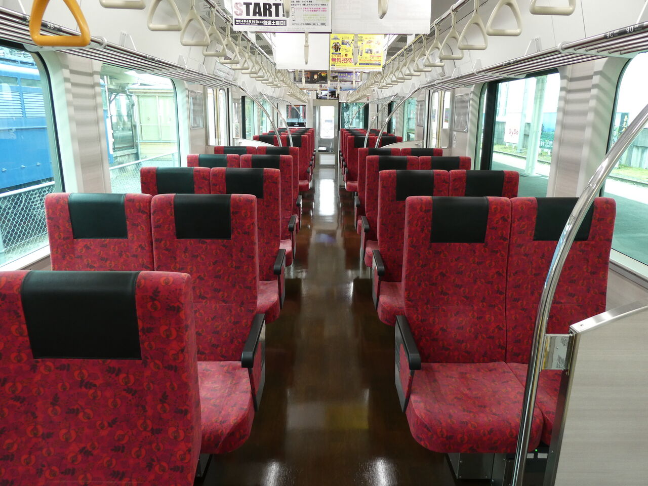 車両内部をぐるっと見渡すと、現在の通勤電車では当たり前に装備されているデジタルサイネージがどこにもなく、ただ、ドア上部に文字情報が流れるというだけで、やはり古さは否めません。ただ、シートは思っている以上にしっかりと張りがありますので、居住性という部分に関しては問題なさそうな感じを受けました。(硬いとも言いますが…。)