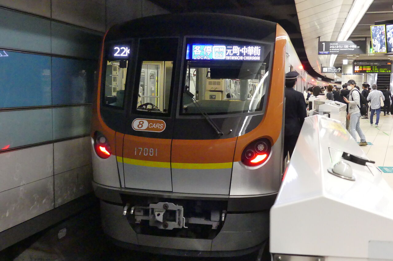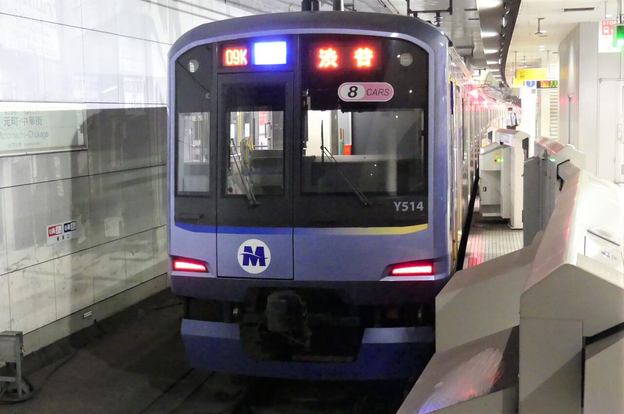 ホームに降りて行ったところ、なぜか東京メトロの車両が入ってきたのですが、行先が「元町・中華街」となっていましたので、この列車に乗車して元町・中華街駅を目指しました。