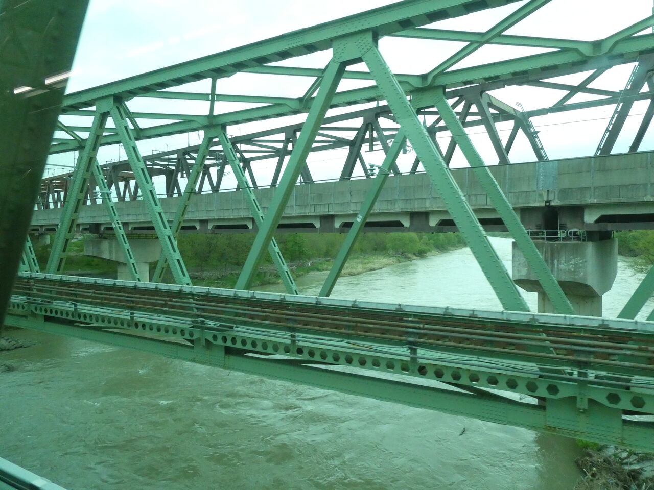 戸倉駅を発車した特別快速[軽井沢リゾート1号]は、特急停車駅でもある篠ノ井駅をノンストップで通過し、その後、千曲川を渡って大きく右に進路を変えてしばらく走ると長野駅の1番線に到着しました。