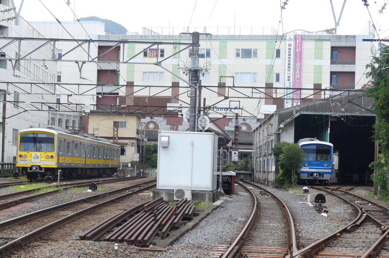 北総線には色々な鉄道会社の列車が乗り入れていますので、さて、何の列車が来るのかな…と思って京成高砂駅の3・4番線ホームで待っていたところ、なんとホームに入ってきたのは都営地下鉄・浅草線用の5500形でした。本来なら北総鉄道が京成電鉄の車両に乗車したかったのですが、まあ、5500形もそう乗る機会もありませんので、この列車で印旛日本医大駅を目指します。