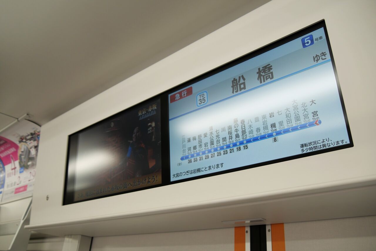 東武鉄道によると、今回乗車した80000系は、環境への配慮や省メンテナンス・省エネルギー化、バリアフリーの推進や安全性・快適性の向上を図った上で5両編成としたようですが、東武野田線は混雑する路線なので、その点は大丈夫なのかちょっと気になった乗車でした。