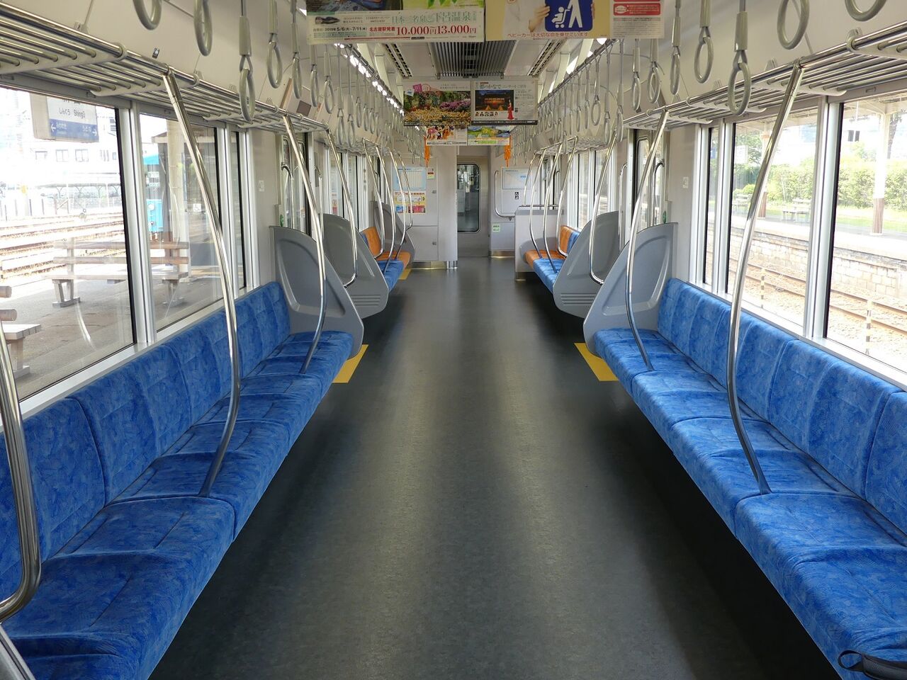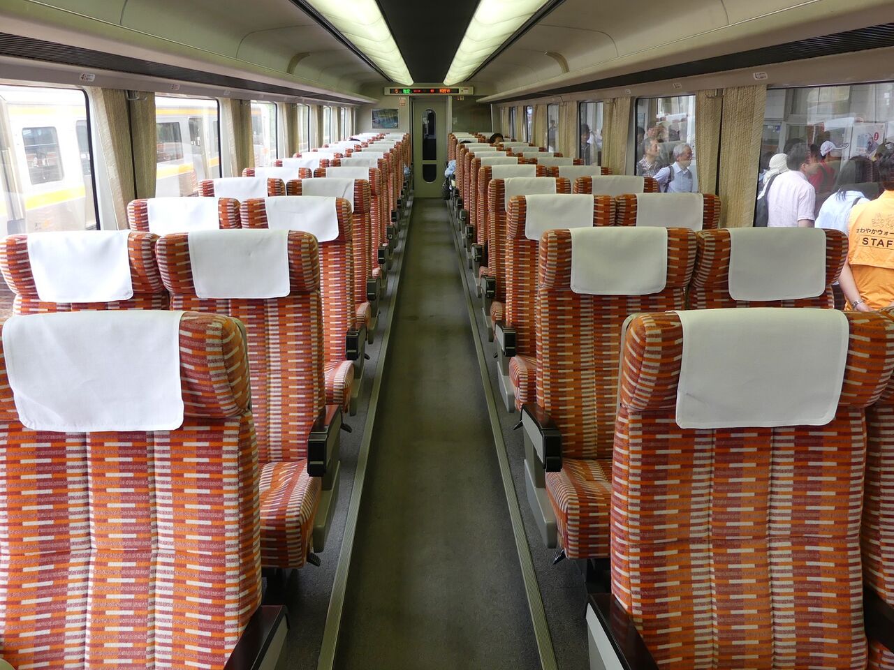 ここから乗車するのは5820系ということで、ちょっと近鉄らしからぬ塗色の車両です。車内はL/C車となっているのですが、なぜかロングシートのまま使用されていました(ロングシートで使用すると通路が狭くなるんですよね…。)。この列車、名張駅を過ぎるころから大混雑となりました。
