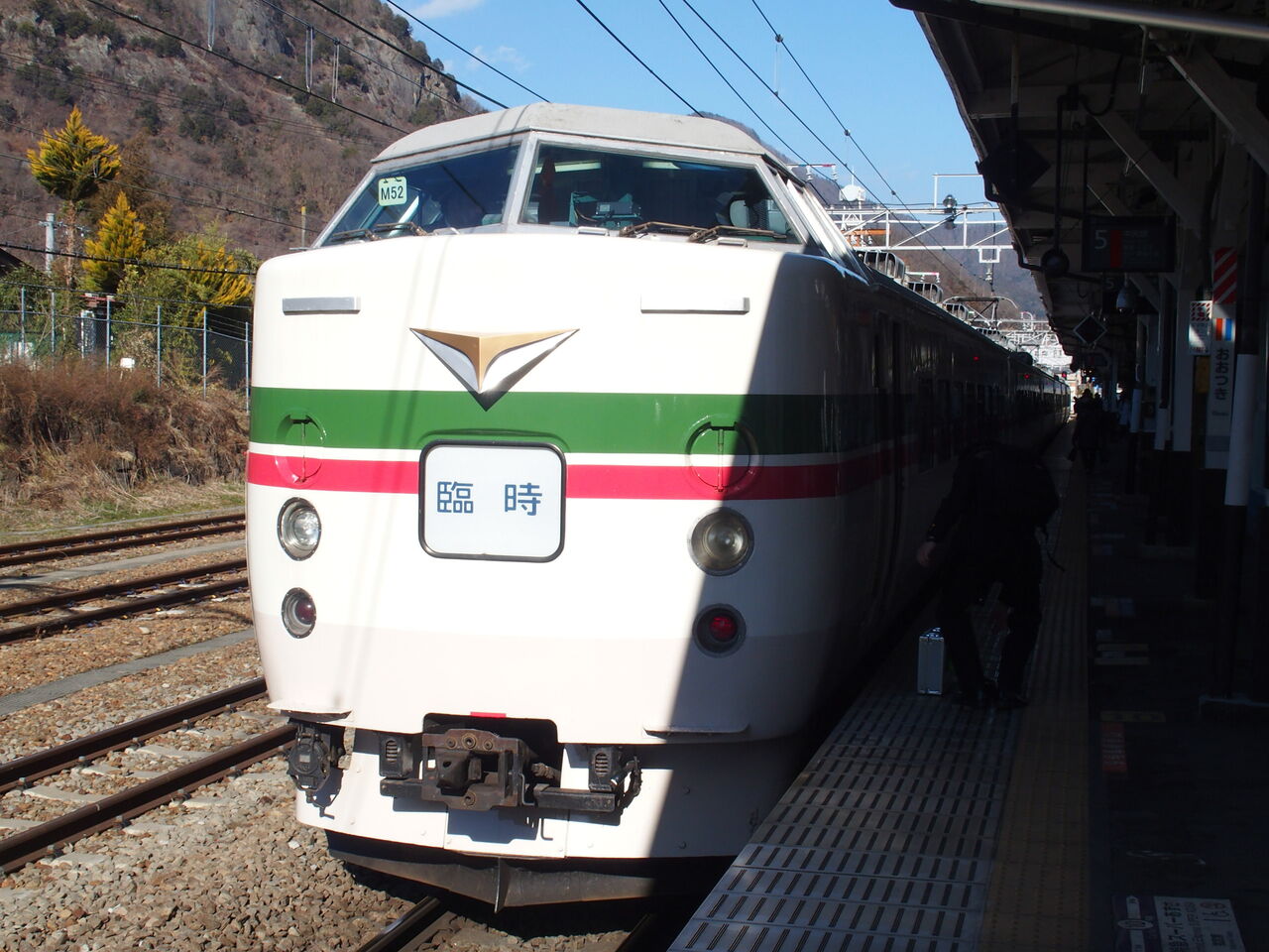 河口湖駅に戻ってきました。ここからはJR東日本の189系を使用する快速[富士山]に乗車して大月駅に戻ります。
