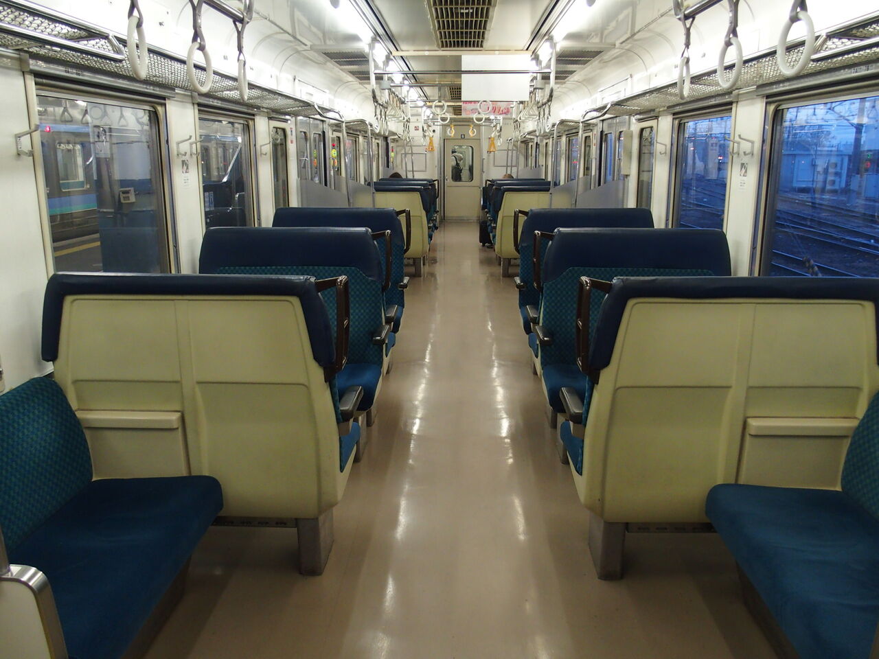 先ほどまで乗車していた3両編成はセミクロスシート使用でしたが、今回は残念ながらロングシート車編成いうことで見る場所に困りながらロングシートに座って松本に戻りました。