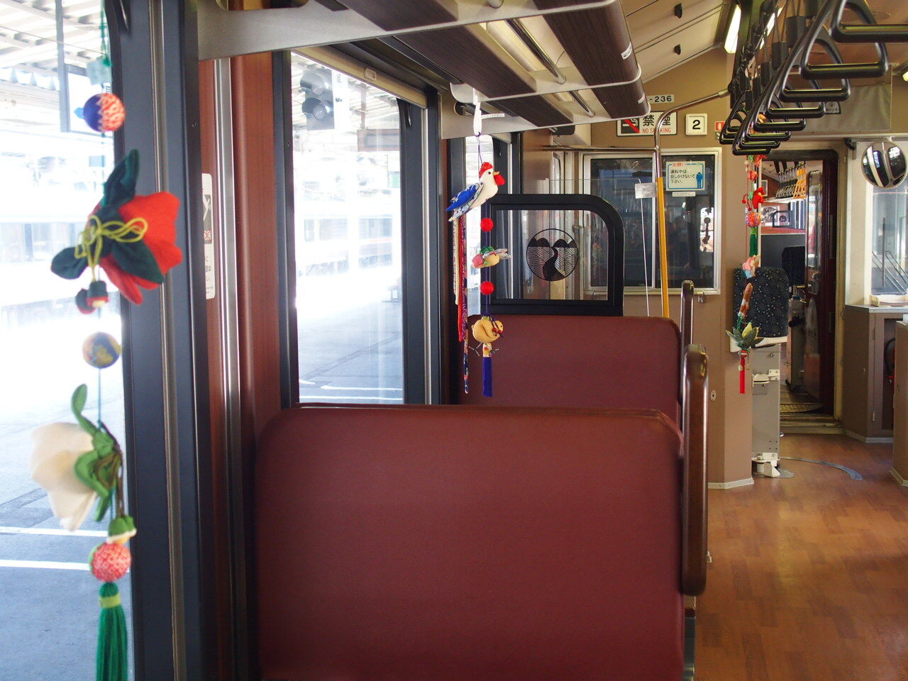 下吉田駅で一休みした後は、水戸岡さんがリノベーションした6000系(元JR205系)に乗車して特急停車駅の都留文科大学前駅へ向かいます。