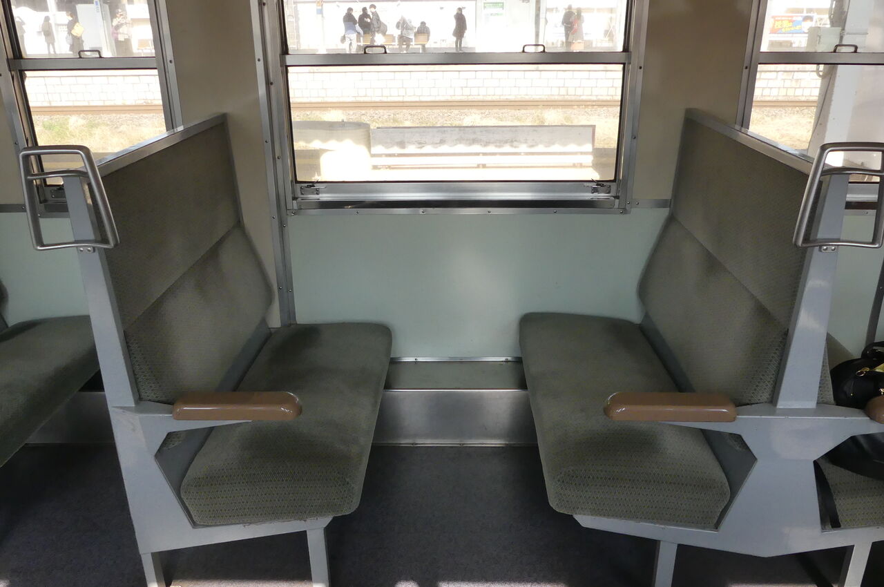 槻木駅からは最新のAB900系に乗車します。この車両は阿武隈急行が2018年から導入を開始した新型車両で、JR東日本のE721系をベースとした車両です。この車両、明るくてトイレもあるので安心して乗車できるのが良いですね。