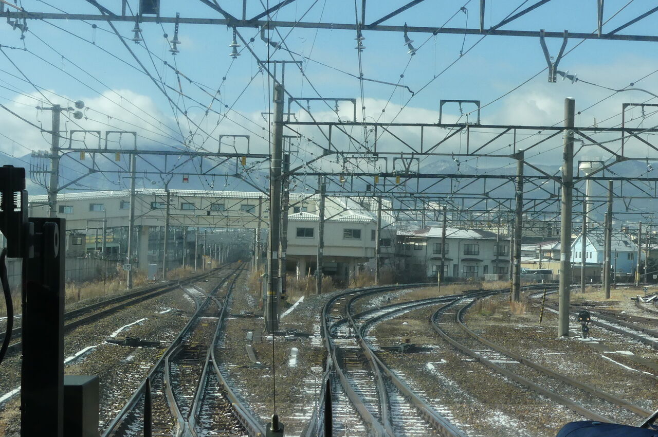 阿武隈急行線は比較的駅間の距離が短いのですが、最後の停車駅である卸町駅を発車するとしばらく走った後に東北本線に合流し、その後、福島駅に到着しました。