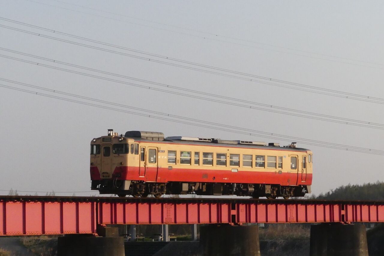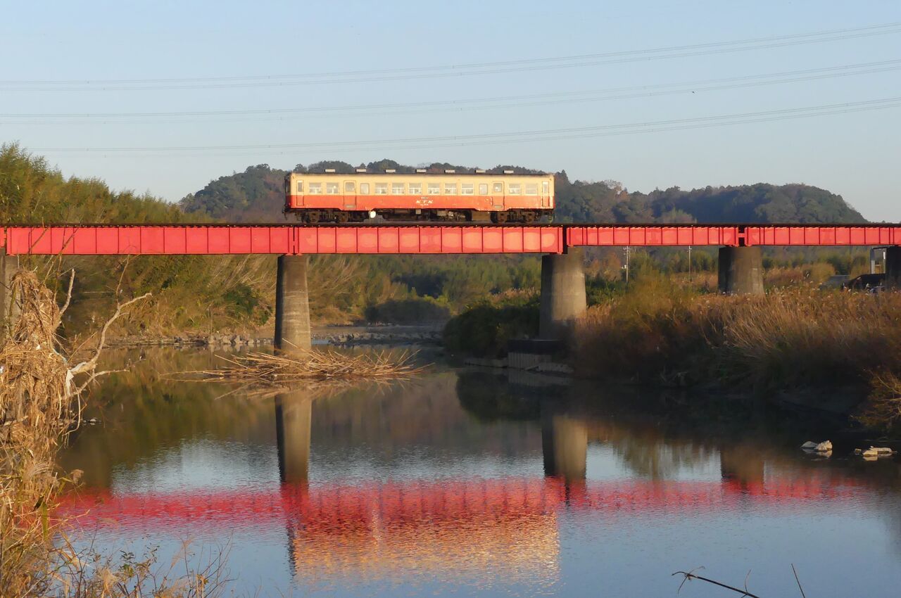 PHOTO:養老川にかかる鉄橋を走るキハ40系2連(6A)