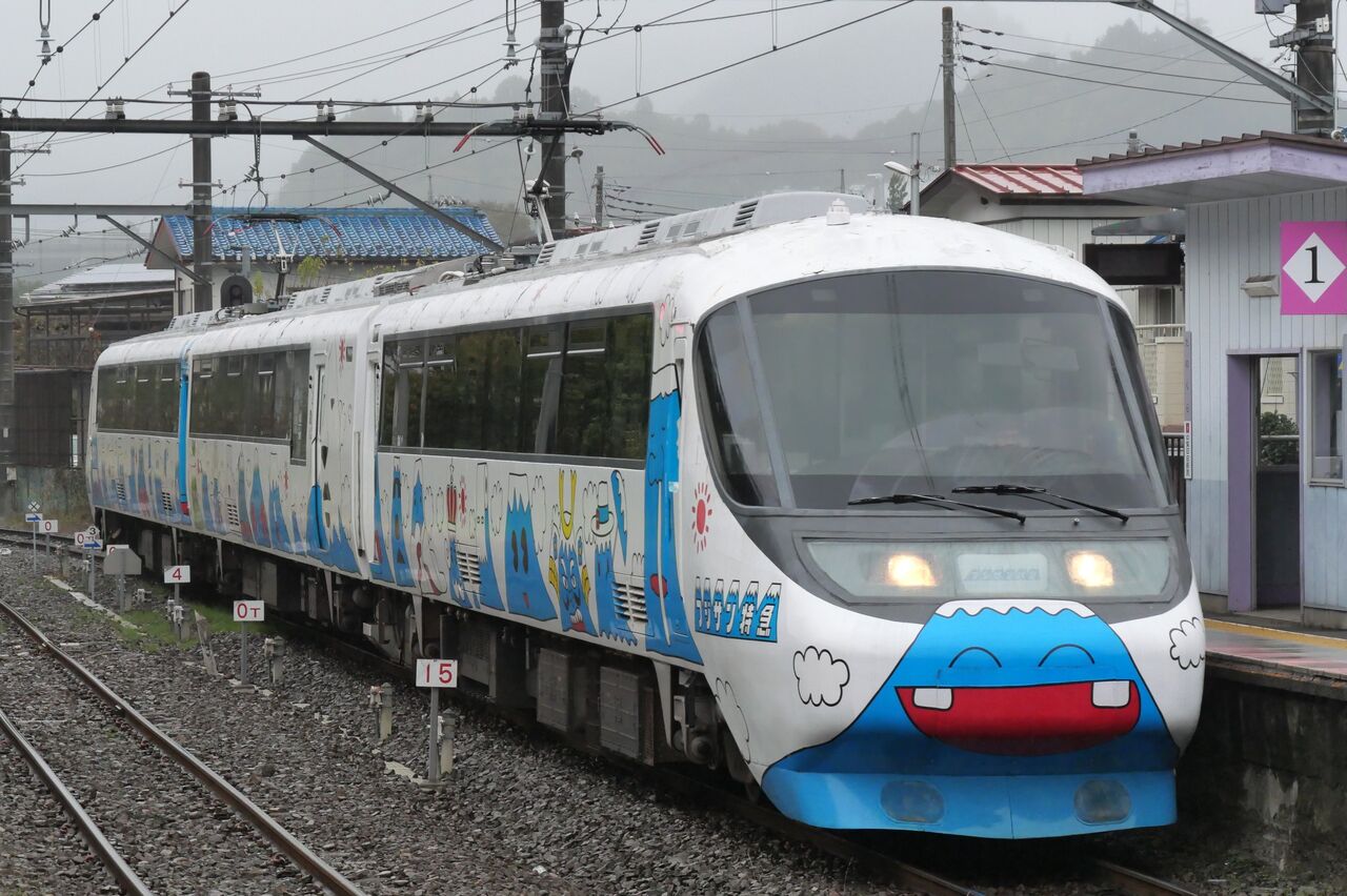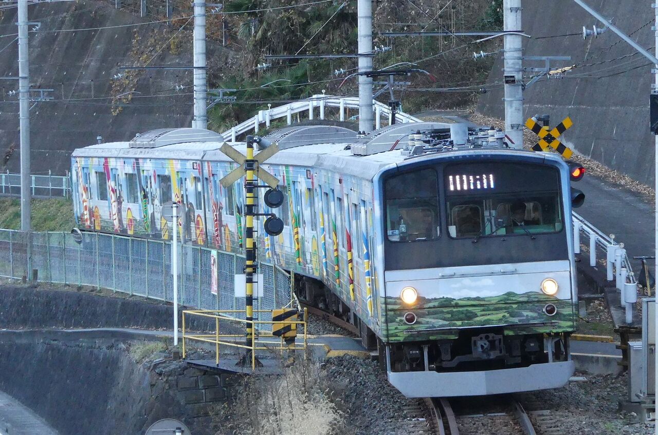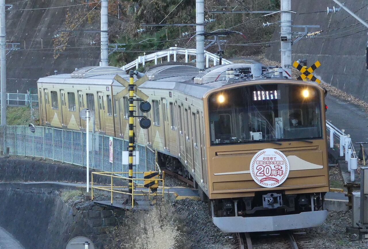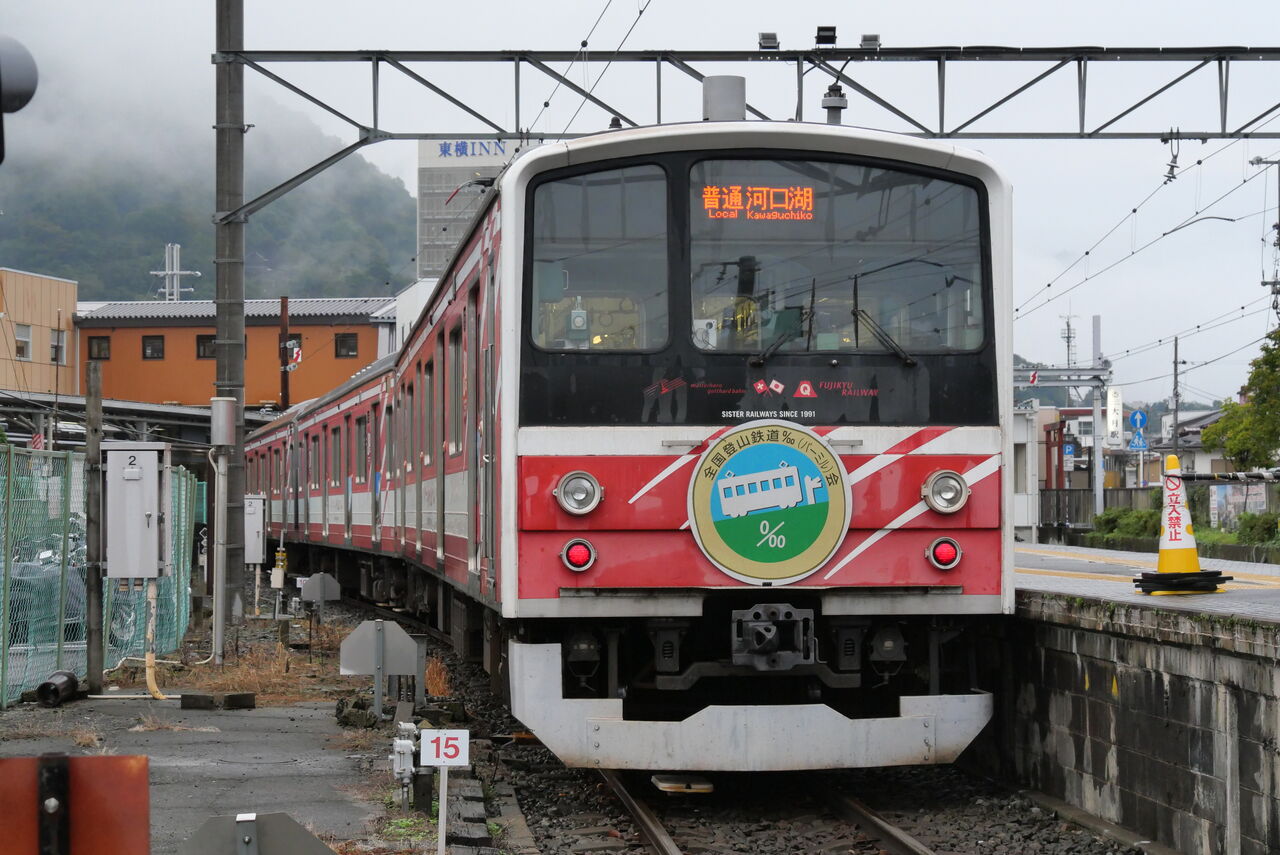 PHOTO:田野倉駅に到着した[富士急行線開業90周年記念号]編成