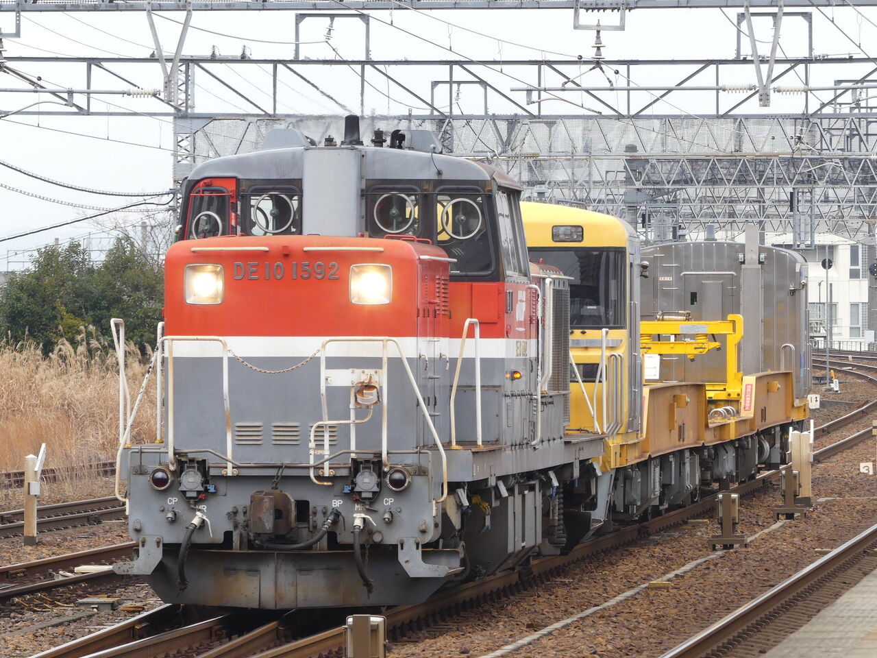 DE10がキヤ97を牽引することと、週あ日しか運転が無いことでで有名な「名古屋港線貨物列車」ですが、この列車、始発駅が稲沢駅となっていますので、東海道線はどのような形態で走っているのか知りたくて撮影をしてきました(撮影場所は枇杷島駅です。)。